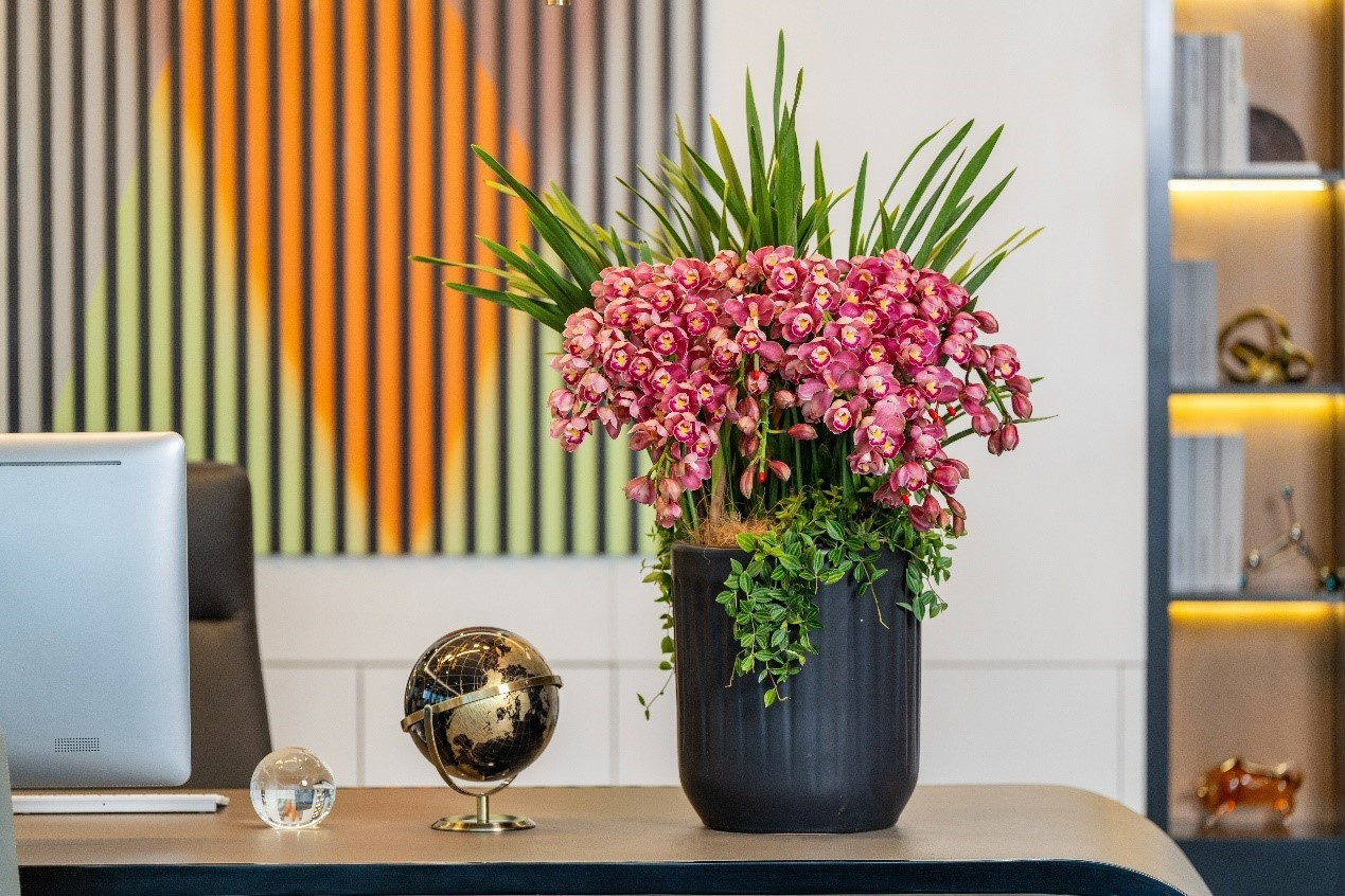 蘭中皇后蝴蝶蘭、蘭花新星大花蕙蘭、花中君子國蘭一直是近年來備受青睞的年宵花市“人氣王”。蝴蝶蘭優(yōu)雅大方,綽約多姿,且色彩繽紛,品種多樣,一直是傳化年宵花展中的當(dāng)家花旦。大花蕙蘭秀麗挺拔,洋洋灑灑,不僅花枝繁茂,陽光下還會(huì)散發(fā)出清新淡雅的幽香,從視覺到嗅覺,可以多維度感受它的風(fēng)雅。還有詩人筆下“蘭之猗猗,揚(yáng)揚(yáng)其香”的國蘭,蓬勃青翠,飄逸出塵,一花一葉都傳遞著中式美學(xué)的浪漫。